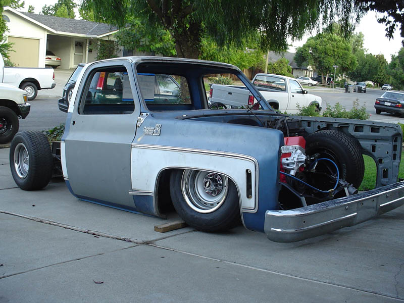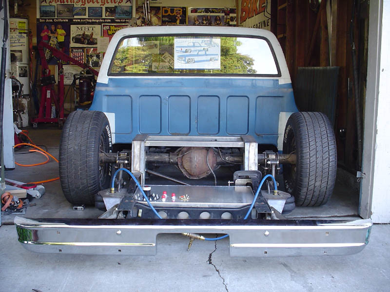 KP 6 link with custom notches by KP, Air Ride Strong arms up front, all with Slam Bags. Front crossmember was sectioned 1.5" and it is Z'ed 2.5"