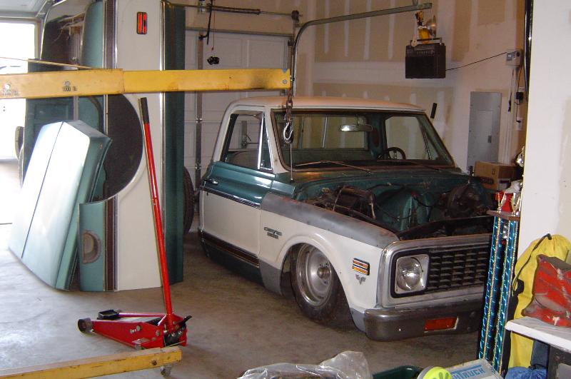 Z'ed front end.. Custom upper and lower arms, 4 link, bagged, set up for 22's