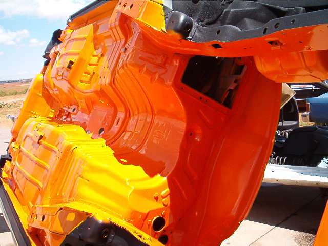 CHANGING EVERYTHING BODY IS COMPLETELY STRIPPED OF EVERYTHING AND IS ON A ROTISSERIE GETTING PREPPED FOR NEW PAINT