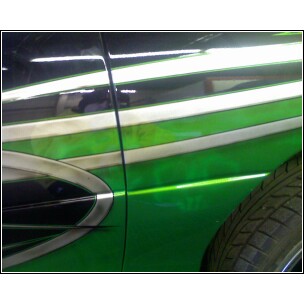 shaved doors, truck lock, nose emblem, antenna, gas door, gas filler relocated behind taillight, lambo doors, ss hood,molded ground effects, custom HOK paint thanks to Indy Speed and Custom