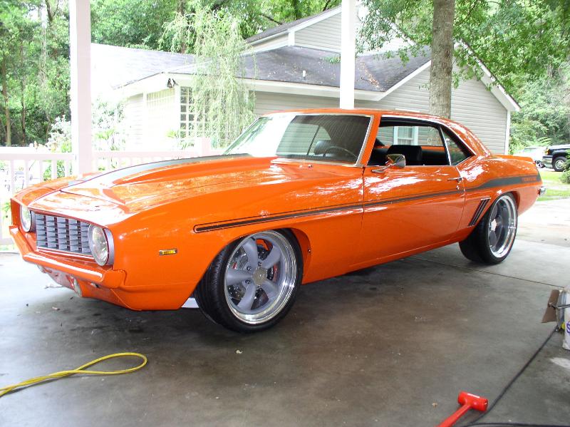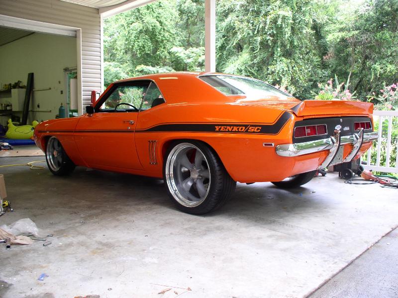 Hugger Orange/Yenko Stripes, Endura Front Bumper, Rear Bumperguards, Blacked out rear panel, RS taillights, smoothed firewall, mini tubbed