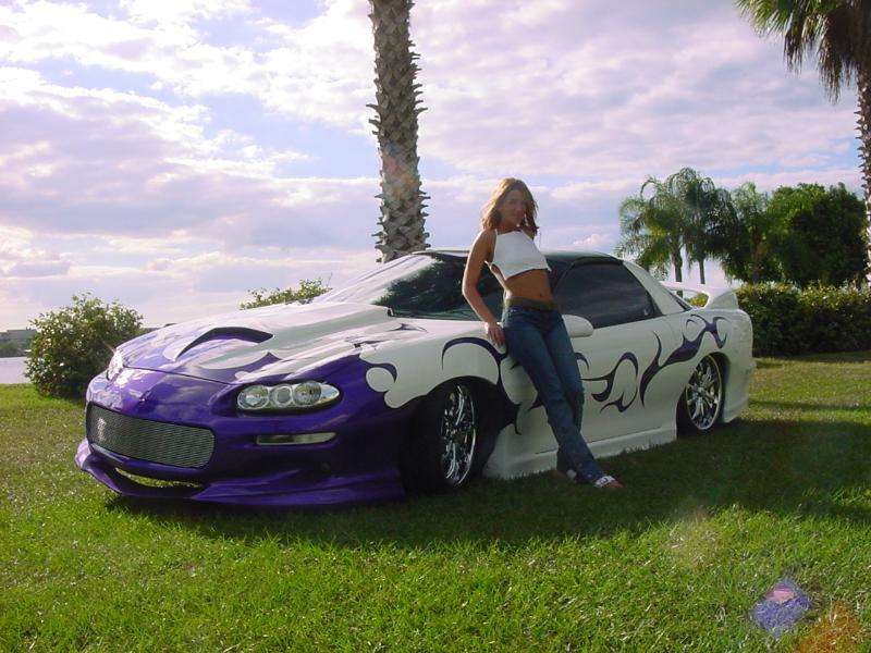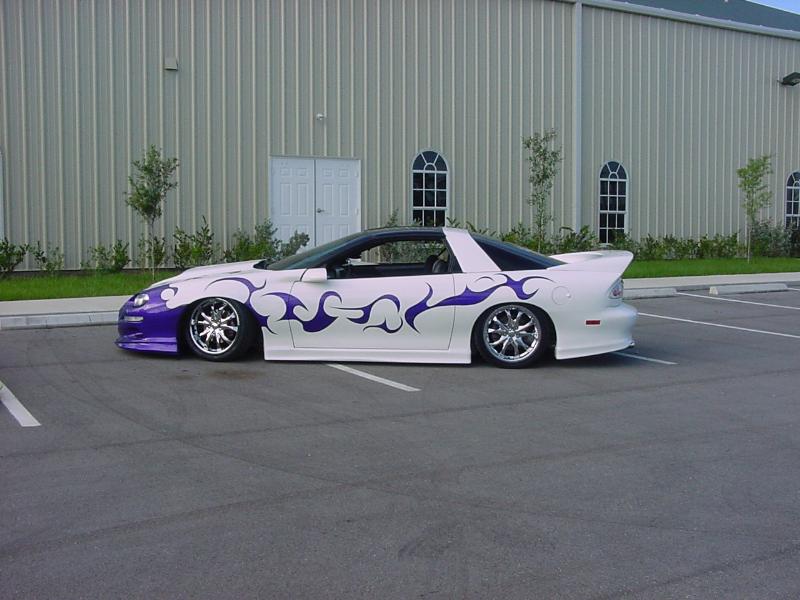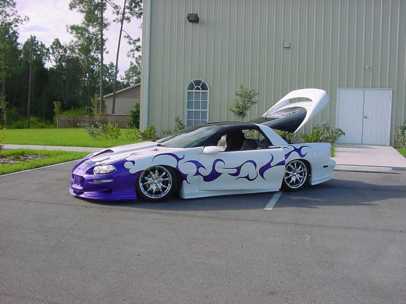 White with graphics, molded in ground effects, shaved door handles and key hole, shved body line, molded all body lines in, Erubuni front skirt, west wings grill insert, Underbody purple neons