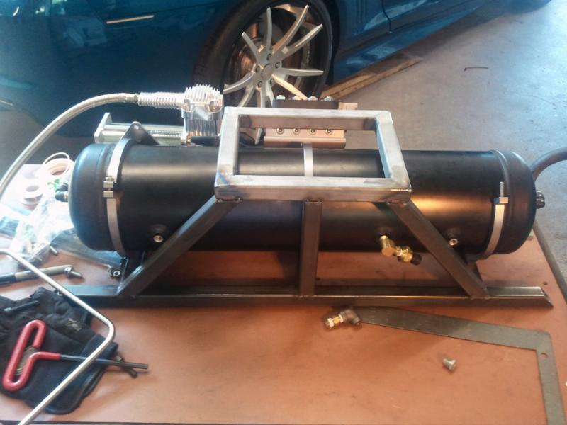Halo Super Cars Strut Tower Brace. Air Lift struts with AccuAir E-level control system. Custom mounting bracket with eXo mount with Kinetik power cell and 1/2" stainless hard lines