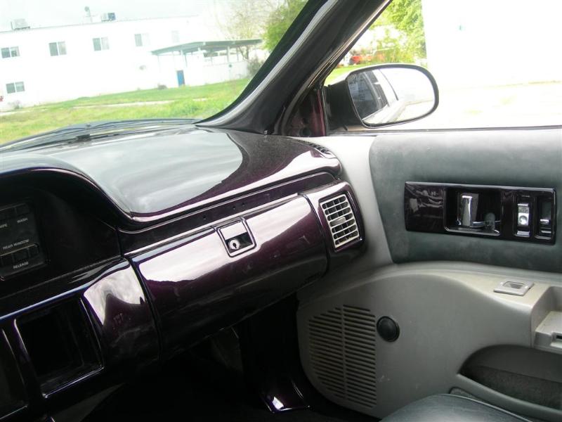 Dash and plastic peices painted body color. black vinyl with black suede inserts on the seats.