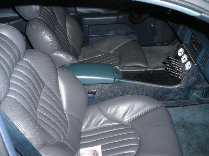 Blue.... Billet shifter,Billet rear view mirror, installed Bonneville bucket seats...but need to re upholster them they dont match the interior