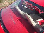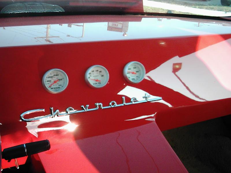 B.A.D. Hellfire wheel and flamed billet rear view mirror. Four 3-A racing bucket seats wrapped in "bone" vinyl. Sheet metal dash and rear section and console. Relocated window switches.