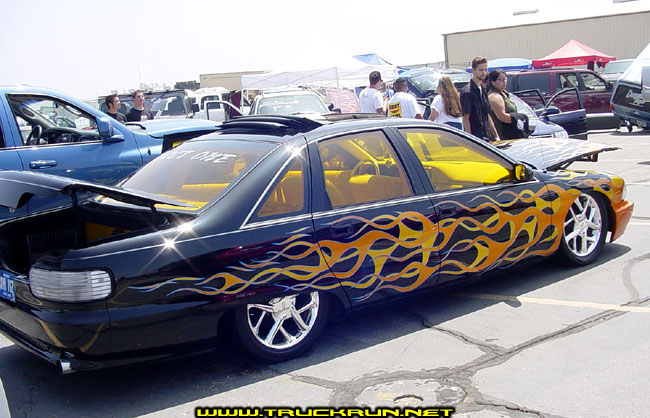8 Gallons of Dupont clear and days of color sanding. Deeply buried Kandy flames (House of Color custom mix) these flames jumpout at you in the daylight.Door jams are equally as nice. Shaved deck lid, Fiberglass front and rear bumper covers w/billet inserts. Fold back canvas sunroof.