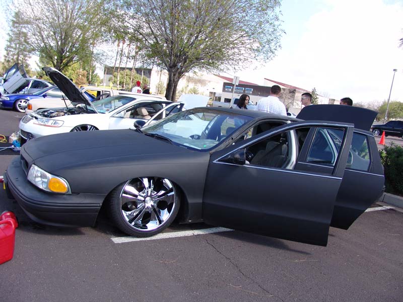 8 NICHE AUDIO TEN INCH SUBS INSIDE THE CAR. 4 ARE IN A CUSTOM FIBERGLASS ENCLOSURE THAT IS FIXED INTO THE REAR DECK, THE OTHER 4 ARE DOWN A CUSTOM CENTER CONSOLE THAT EXTENDS FROM THE REAR DECK ALL THE WAY UP TO THE DASH. 8 NICHE AUDIO 6.5" COMPONENTS IN THE DOORS, 2 NICHE AUDIO 3000D AND 2 NICHE AUDIO 60.4C AMPLIFIERS IN THE TRUNK WITH A CUSTOM BUILT FIBERGLASS TUB SURROUNDING THE AMPS AND PUMPS, PIONEER AVH-P6500DVD IN DASH TV/ DVD PLAYER, AND TWO OPTIMA RED TOP GROUP 34 BATTERIES, AND ALL MONSTER PERFORMANCE CAR WIRING, RCAS, DISTRIBUTION BLOCKS, BATTERY CONECTORS, ETC....