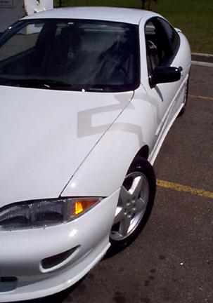 Shaved all emblems, put a big-ass silver pearl bowtie on each side of the car.
