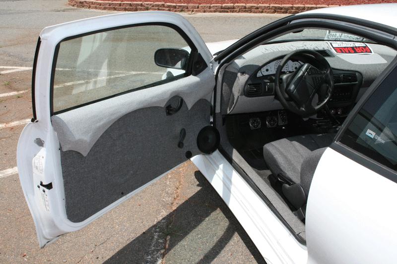 Full Tweed all the way around, Almost Finished Fiberglass door panels, Fiberglassed arm rests covered in tweed in the rear. Fiberglass deck lid for 6x9 speakers. Flashed in Trunk with w-7 sub and enclosure.