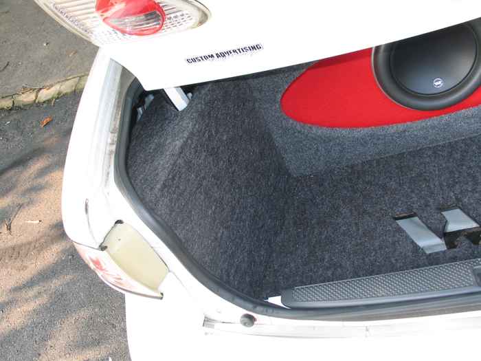 Sony MP3 head unit for loads of tunes, RF 1000bd amp powering a 10w7 in the trunk, sony 4ch 400 watt amp for the highs and mids up front. pioneer 6x9 and 3x5 inside with RF tweeters.