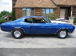 Painted electron blue, all new bumpers, chrome trim, stainless steel brakes lines, repainted frame, and underbody, 4" fibergalss cowl induction hood, custom emblems
