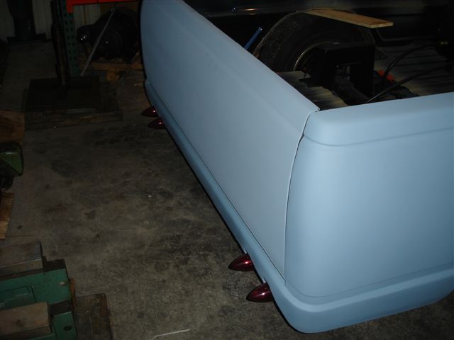 Molded roll pan with four frenched 59' caddy tails in it, shaved taillights, shaved tailgate handle, shaved antena, boxed frame supports from notch back.