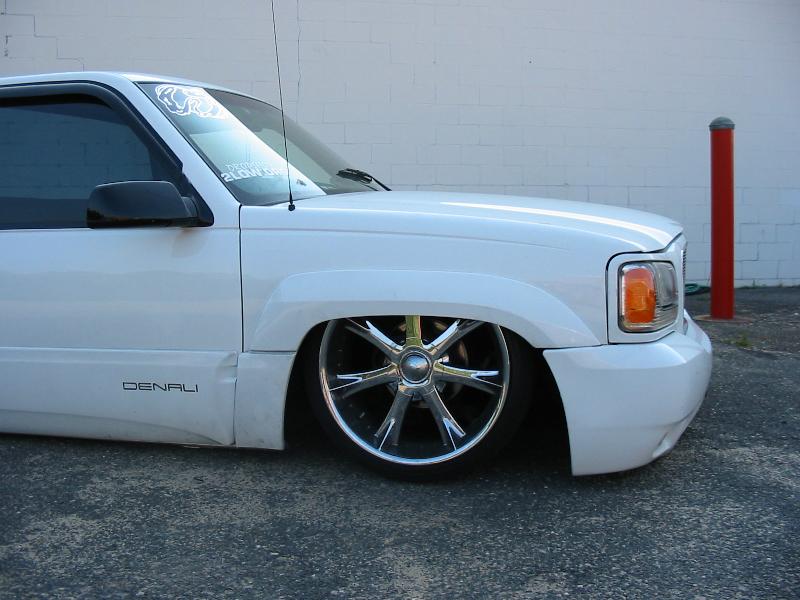 shaved doors ,antenna,mirrors,rain pockets,gas tank,brake lights,3rd brake light,tailgate molded shut.denali full front clip including doors and rear panels.custom hand made steel gas tank located under the bed.graffics in the door jambs sheetmetal bed