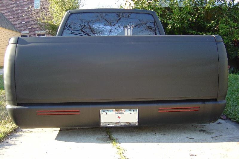 99 caddy clip, shaved doors..stake pockets...tailgate, flat black..paint coming soon