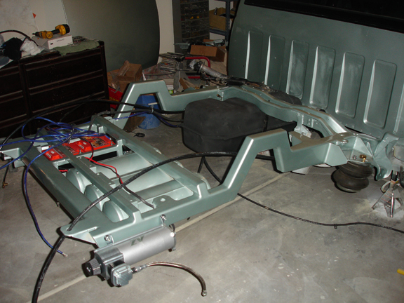 Full air suspension...lays body...smoothed and painted the frame and chromed all the individual pieces.
