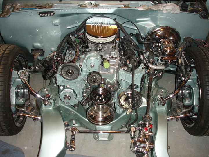 4.3 stock crate engine...hey it's good on gas...LOL...everything has been either painted or chromed.