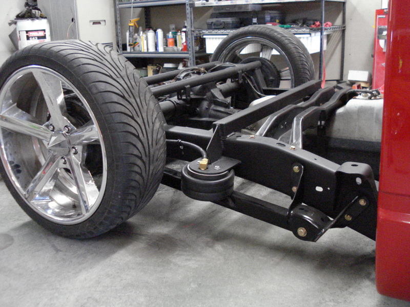 Ekstensive 2-link and cups,slam re-7s,4 1/2 smc,4 3/8 smc,duel viair 480s,8 gallon tank all mounted under the bed