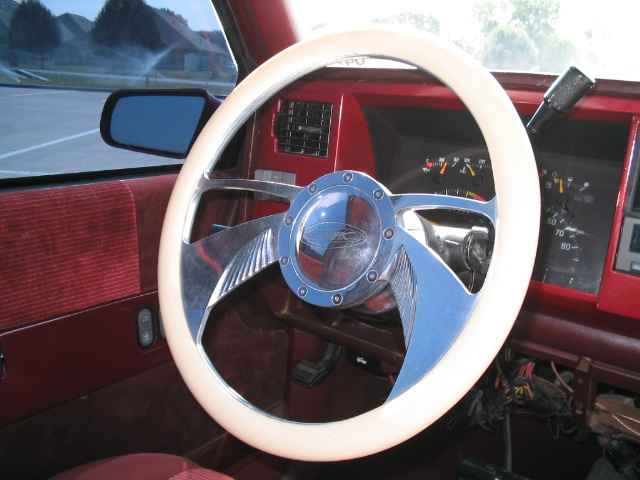 Under Construction:::stock,94 chevy guage cluster, 92 454 ss seats and center console,shaved door handles, shaved guage bezzel thing, misc. color matched painted interior peices,auto loc shaved door handle kit, budnik tusk steering wheel