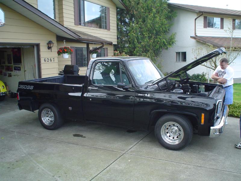 350 chevy small block w/ a 350 turbo, with a little bit of chrome on the motor