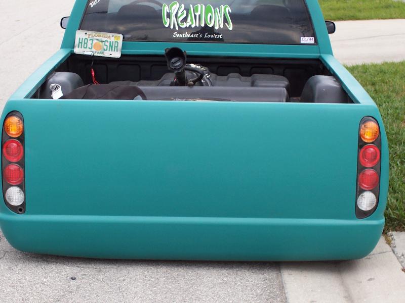 ss calvu mirros, shaved door handles, primer green. bed rails, antenna ,skin and lights shaved and top body line