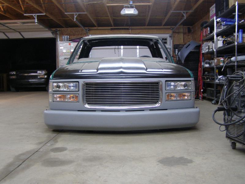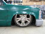 3"body drop,Shaved door handles,cab seams,third brake light,stake pockets,tailights,tailgate,Sheet metal bed,molded roll pan,reflection cowl hood, GMC grille,smooth front bumper, billet grille, euro corners and park light, projector beam head light,2001 chevrolet silverado mirrors, some round tailights and painted Planet Colors Mountain Magic Green