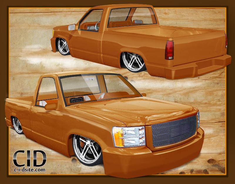 cowl hood,smooth front bumper, painted rear work truck bumper, street sene mirros clear corners and an led 3rd brake light.