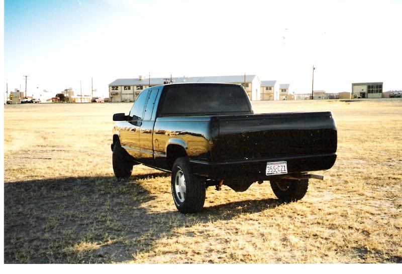 shaved doors, tailgate, bed rails,all three brake lights, anntena. rollpan, flush bed cover, billet phantom GMC grill, hidden hitch, custom tail light, 5% tint