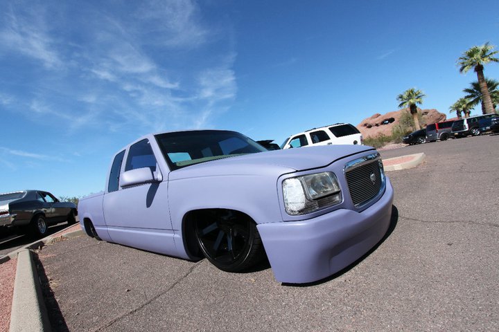 shaved doors, tail light 3rd brake light, full skin combo with led's, full sheet metal bed, cadillac front clip,