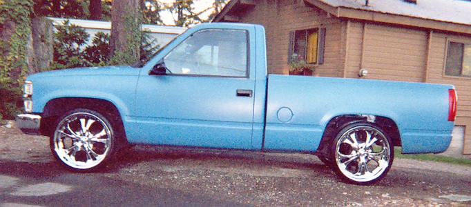 put in a v8 finish the bed body and paint fully painted interior new wheels put on my denali front clip