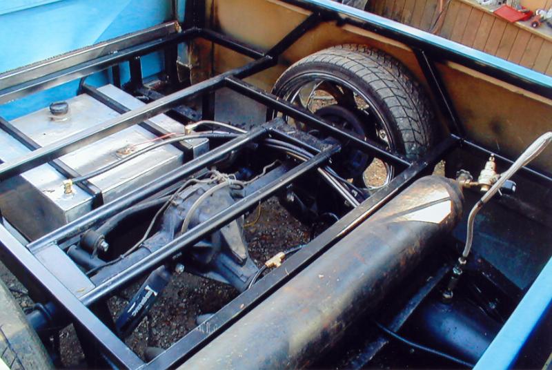 krz upper and lower arms with slam bags lays rocker on 22's, ekstinsive metalworks two link rear firestone bags,relocated gas tank to a fuel cell in the rear 2.5 inch body drop