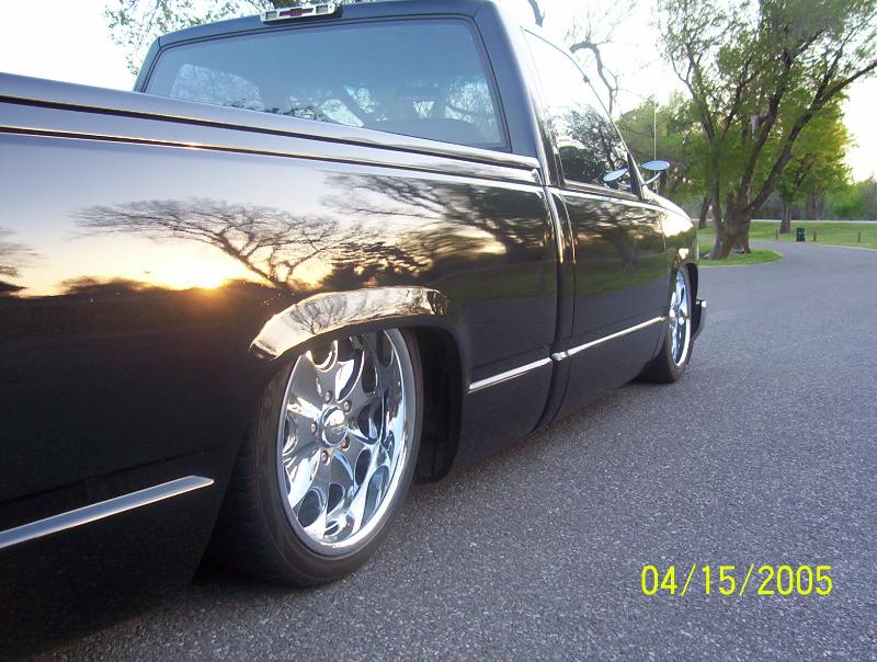 shaved tailgate, door handles, molded rollpan, billet mirrors,HoK onyx black with ocean blue and Ice pearl