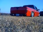 Red, Black, and silver with pinstriping, hood scoop, bed sheet metal and tubbed,