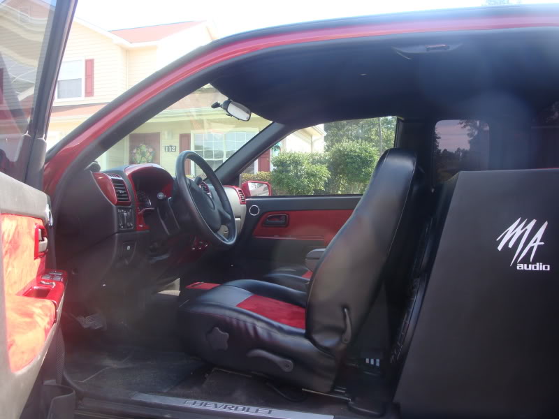 black Smoothed wrapped Headliner deleted visors, Seats chopped head rests wrapped Black vinyl and red suede centers, red suede door inserts