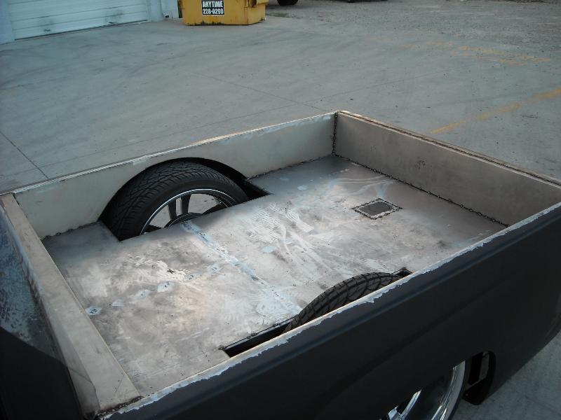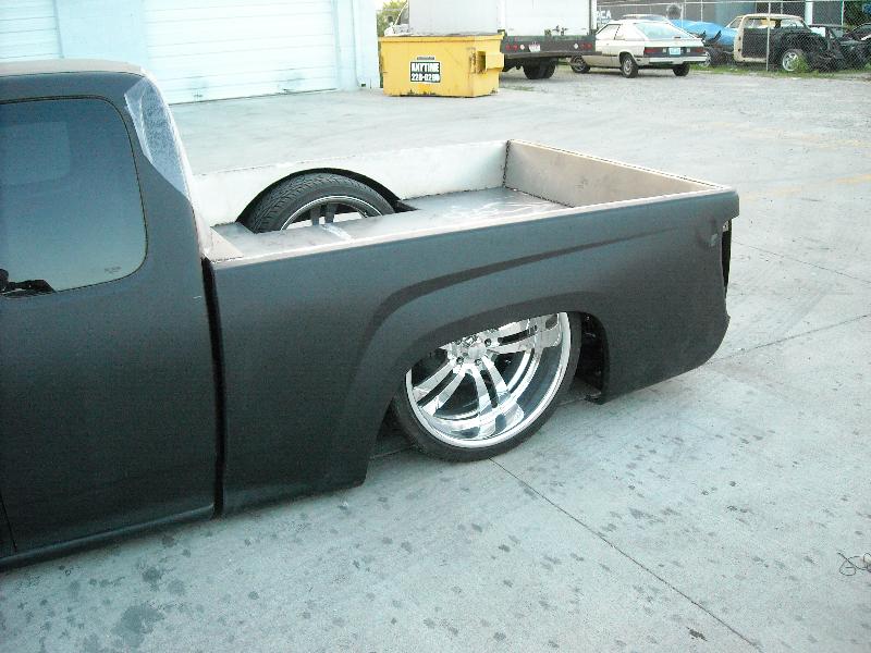well apparently the shop that bagged it thought that instead of shortening the rear end, they'd cut his bedsides because it was an xtreme people wouldnt see it... now that we are bding it, theres a problem... so we built a new bed from scratch. it also received a grant combo, and sheetmetaled bed, with hagan pop up gas filler door, but it was recently rear ended, and we now have to put a new skin on rebuild the bed, and re sheetmetal it** someone rear ended him a few weeks after picking it up from the shop and instead of just fixing the skin he's decided to redo the sheetmetal in the bed, and do some other things ** stay tuned