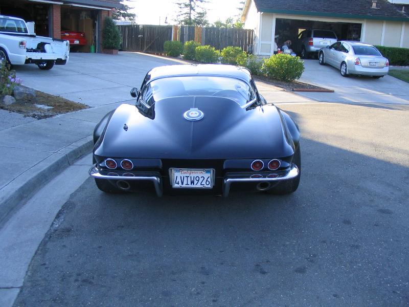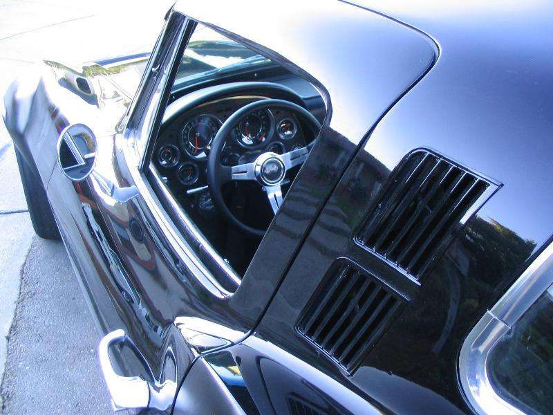 It is painted NSX 00 black with huge custom fiberglass fender flares. It will have a 67 big block hood in a few months and no exhaust holes in the rear lower section. It will be painted black with dark purple race stripes and outlined with lime green.