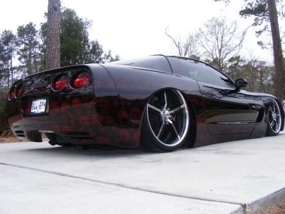 Shaved Door Handles, Gas Filler & Emblems, Custom Paint by South Coast Customs (Black with Deep Red Skull Graphics)