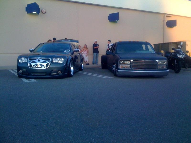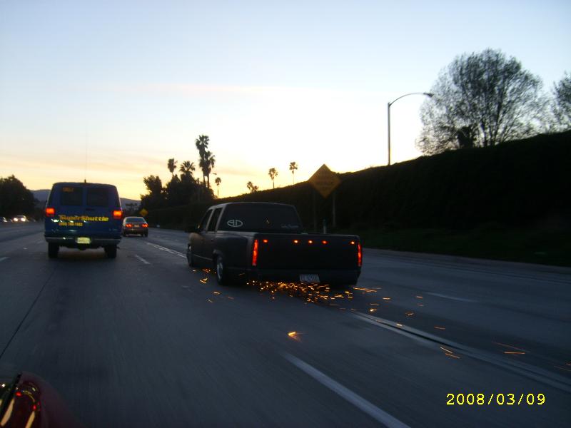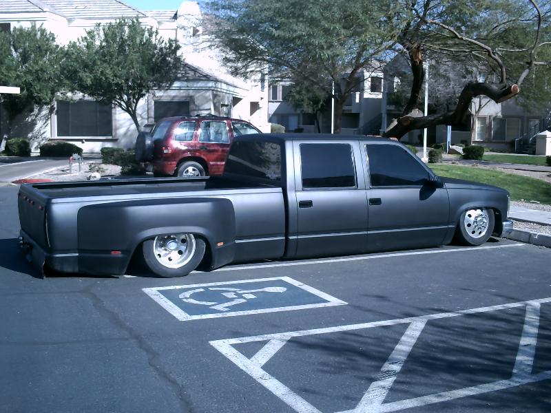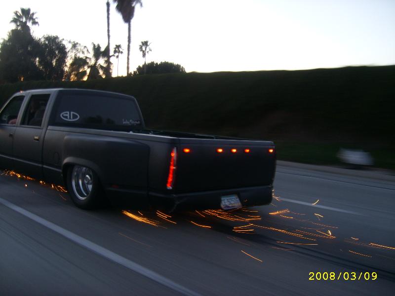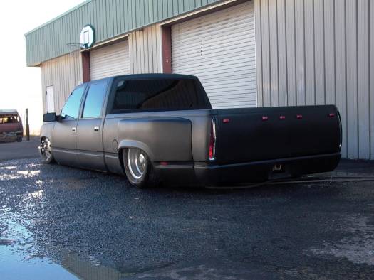 Projector head lights, billet grill, shaved tail lights replaced with catty tail's, relocated tail gate handle, stretched and raised rear fenders and 3" body drop.