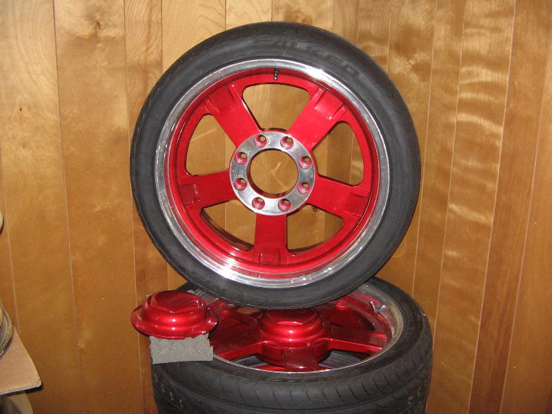 20x8 colorado custom aribbas powder coated red with polished lip with 245/40 tires.