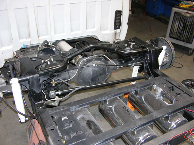 BAGGED, 4 VIAIR 420 COMPRESSORS AND 3-3 GALLON CHROME TANKS, 3/8" COPPER HARDLINE, 2 3/4" CHANNELED BODY DROP, 5 1/4" DROP ON THE BED