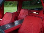 Custom after market streetrod buckets. Covered in red ultra leather and red perferated ultra leather with black leather football stitch, Floating center console with steel center satin black with red and black old school pinstriping. Billet botie strip inlay in rear panel below rear window, dash satin red with upholstered top cap, smoothed door panels hand made armrest hand made stainless trim, relocated window switches to hidden location, hand made kick panels, deleted e-brake pedal, also deleted sun visors and all oh shit handles, re spooled seatbelts in red, red ACC carpet, smoothed headliner also in red ultra leather. All interior work by Trent@ www.trentstrickupholstery.com Hand made steering wheel by myself hoop is 2.25" diameter tubing satin black pin striped and wrapped in leather.