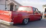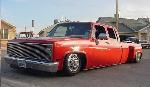 shaved back door handles, rain gutters, emblems and antenna, fender lights, and Front coner lights.Custom mirror. Front bumper moved 1 1/2 closer to body. phantom grille. 89-98 clear cab lights,and tailgate skin.