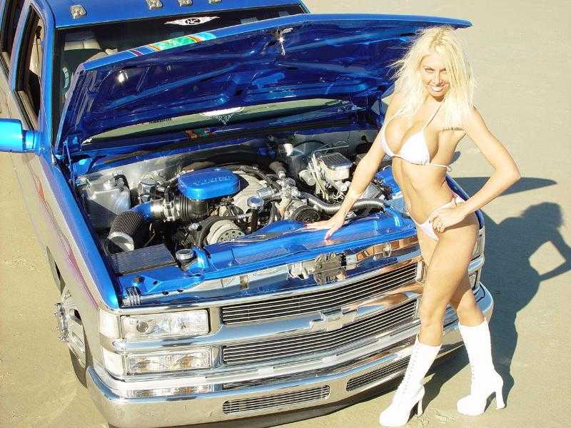 Body dropped 4inches by Robbie Taylor and Mike Barcia and layed out on 22.5 semi wheels, The front has djm 3" drop spindles, custom built shock hoops, has been modified to lay out on the 22's custom built sway bar mount, notched for the tie rod ends and the front and Rear frame has been smoothed out and painted, slam specialty re8 bags everything is powdercoated or chromed by Advanced Plating the rear has a custom 4 link with the bags on the bars, the rear end has been shortened 8 inches to tuck 4 22.5 x 8.25 wheels, step notched rear frame rails , 3 5 gallon stainless steel tanks, 4 viair 480c compressors, smc valves, all suspension work has been performed by Adam Hartman at mechanical advantage and with help by Mike Barcia