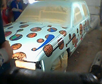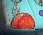 Sliding rag top, fiberglasses headliner, interior trim painted, billet dash kit, billet flame pedals, flame billet halfwrap steering wheel, billet flame mirror, fiberglass kick panels both front floor and rear top corners. Wrapped fur.