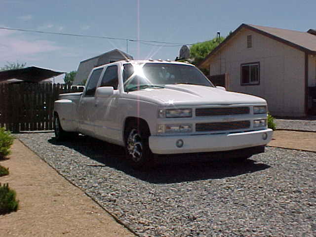 completely whited out, shaved tailgate handle, cowl induction hood,sir michaels roll pan, smoothie bumber w/tear drop lights, full euro clears front andd rear, billit grille and bowtie,tonnou cover.