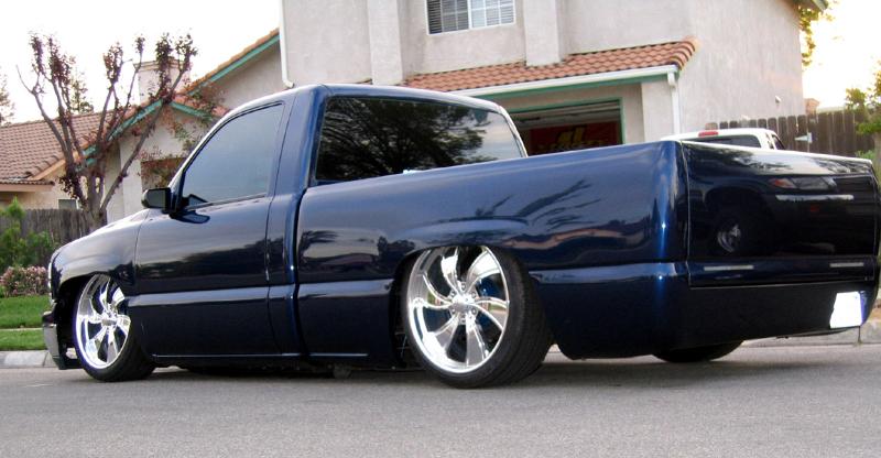 CHROME KRZ CUSTOMS 4 link, Slam Specialties HS bags, 1/2 inch lines,F.B.S.S. PANCAKE. KRZ CUSTOMS CHROME upper and lower control arms. Raised gas tank, KRZ crossmember, Blue Powdercoated brake calipers, spindles and rotors!