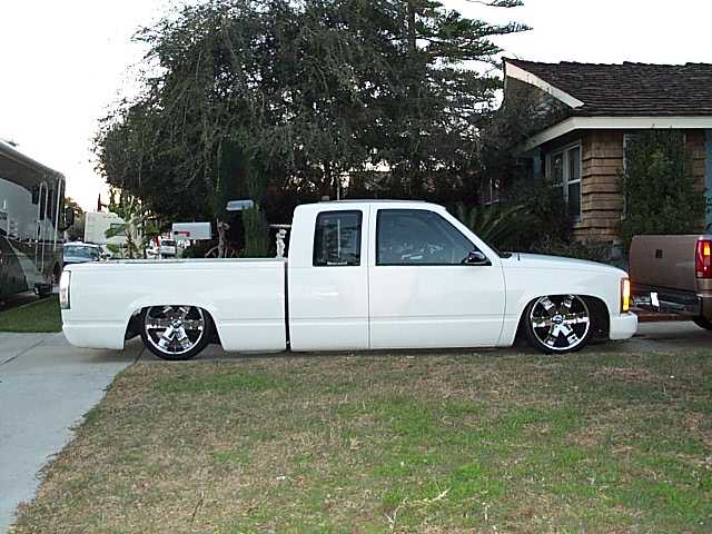 4" stock floor body drop.new front clip.shave the tail lights.6 12"L7's all powered by ample amps.All out custom interior.Too bad my truck was jacked!!!!!!Again!!!!!!!Its for sale no rims or system