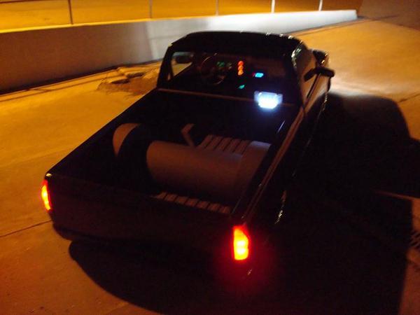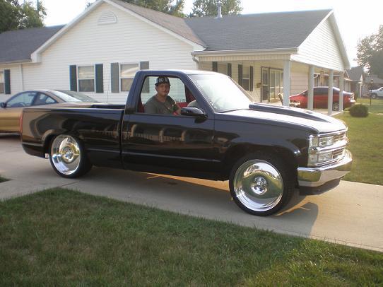 98 grill, smooth front bumper, goodmark cowl hood, Shaved: antenna, door handles, bed rail holes, gas door, tailgate handle, and rollpan. In the bed i had suicidedoors tub with a line-x bed liner. Body work and paint all done by me.