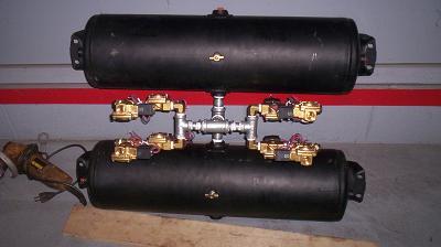 2, 7 gallon tanks between the frame rails. 8,1/2 SMC Valves and lines.Oasis XD2000 compressor.Suicide Doors parallel 4 link with pan hard bar.Suicide Doors gen. 2 bridge kit.2" Belltech Drop spindles.Slam RE 7's all around.