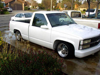 Shaved Doors, Shaved Tailgate, Shaved Stake Holes ,Smoothie Front Bumper, Shaved Antenna, Billet Wiper Covers, Clear Corners, Billet Bowtie, Mirror Blue Window Tint